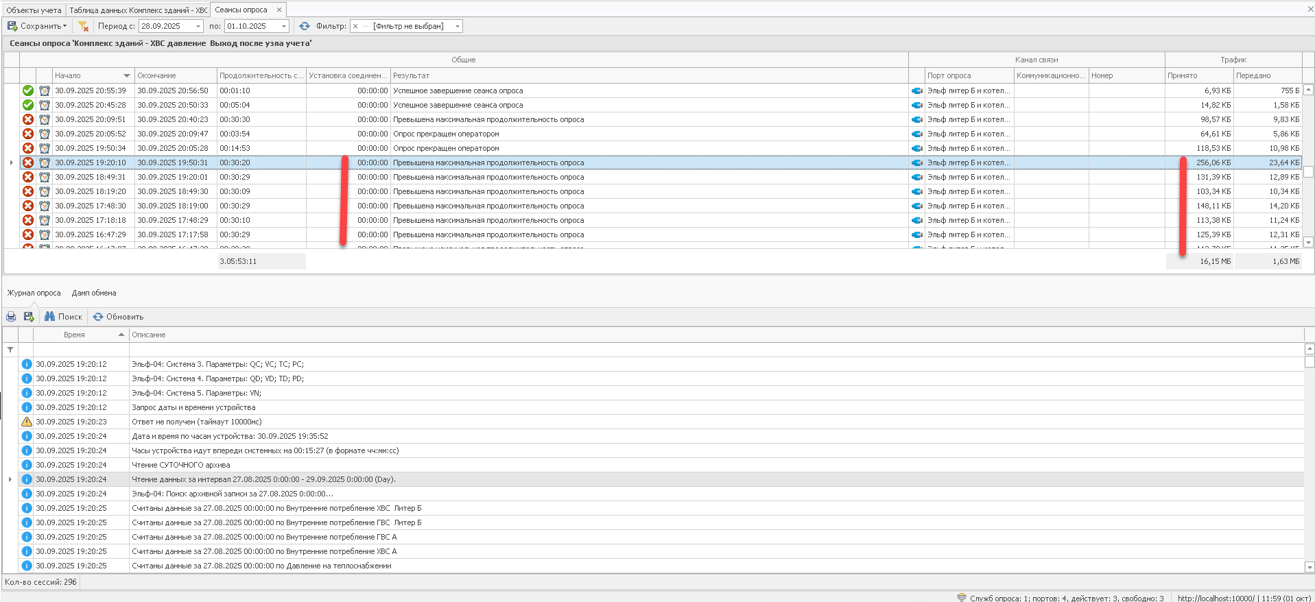 Вчера переназначили начало автоопроса — давление в часовом архиве стало отображаться правильно, появились и текущие данные. Но сейчас уже начали появляться некорректные значения давления в часовом архиве.