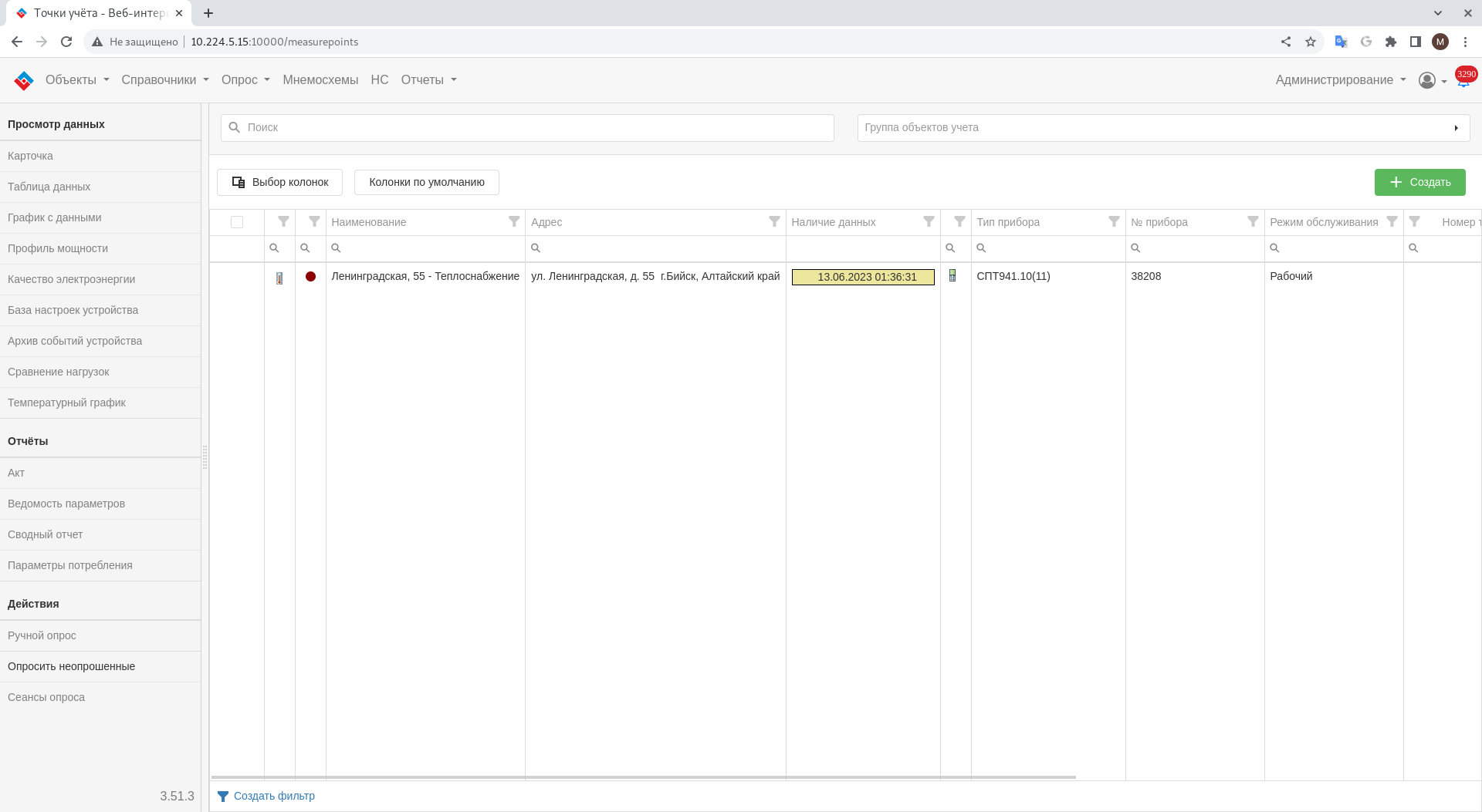 Удаление всех точек учета и объектов, кроме одной, не помогло.