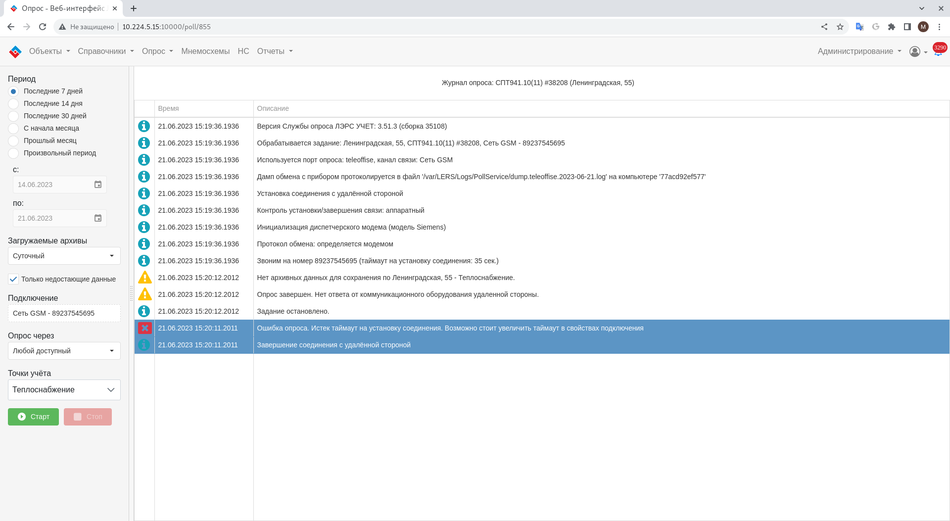 Может что-то еще можно проверить? И какие объекты влияют на опрос (кроме портов опроса), планирую удалить и заново создать их в интерфейсе. Пока даже не знаю, что еще проверить( Исключили все, кроме самого ЛЭРС.