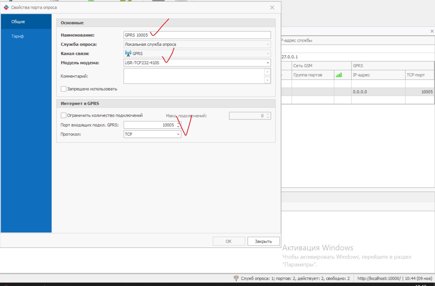 Указанный в настройках порта опроса TCP-порт недоступен: