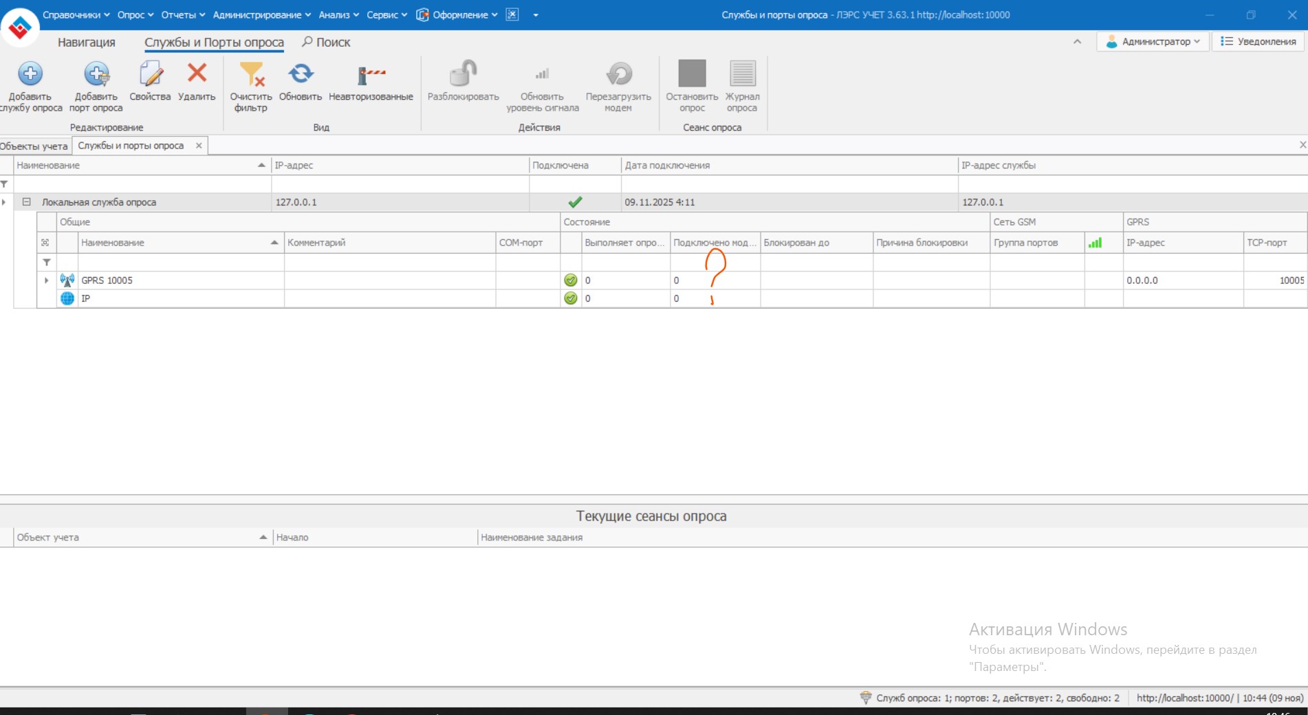 То есть со стороны ЛЭРС УЧЕТ все корректно настроено и реакция на подключения есть. Нет самих подключений вашего модема. Пожалуйста, выясните причину, по которой модем не подключается, и устраните ее.