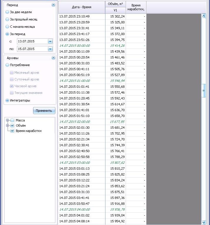 Заметил еще одну особенность, если запрашивать отчет за сутки, то интеграторы с суточными архивами не бьются, а если запрашивать отчет за двое суток показания интеграторов и суточных архивов совпадает.