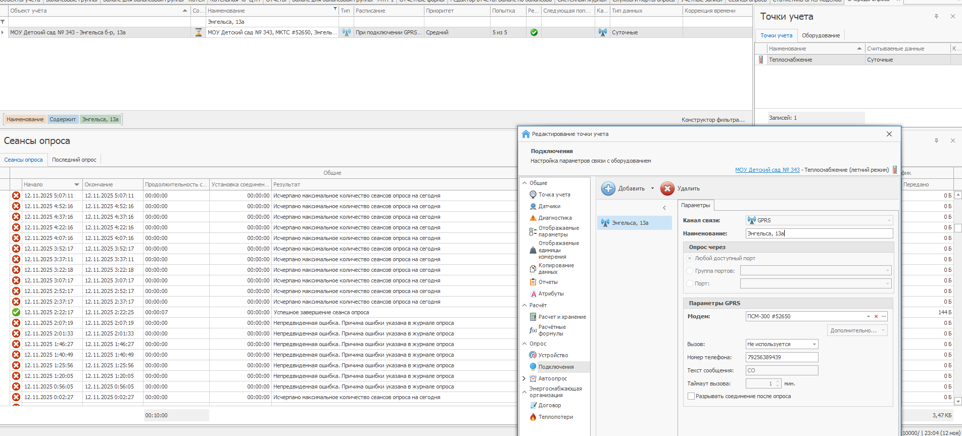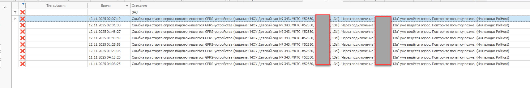 Проверил очередь опроса — предположил, что возможно подключение используют другие приборы, но это не так.