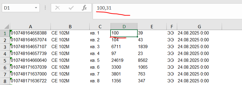 Мне нужна выгрузка в Excel только с целыми числами.