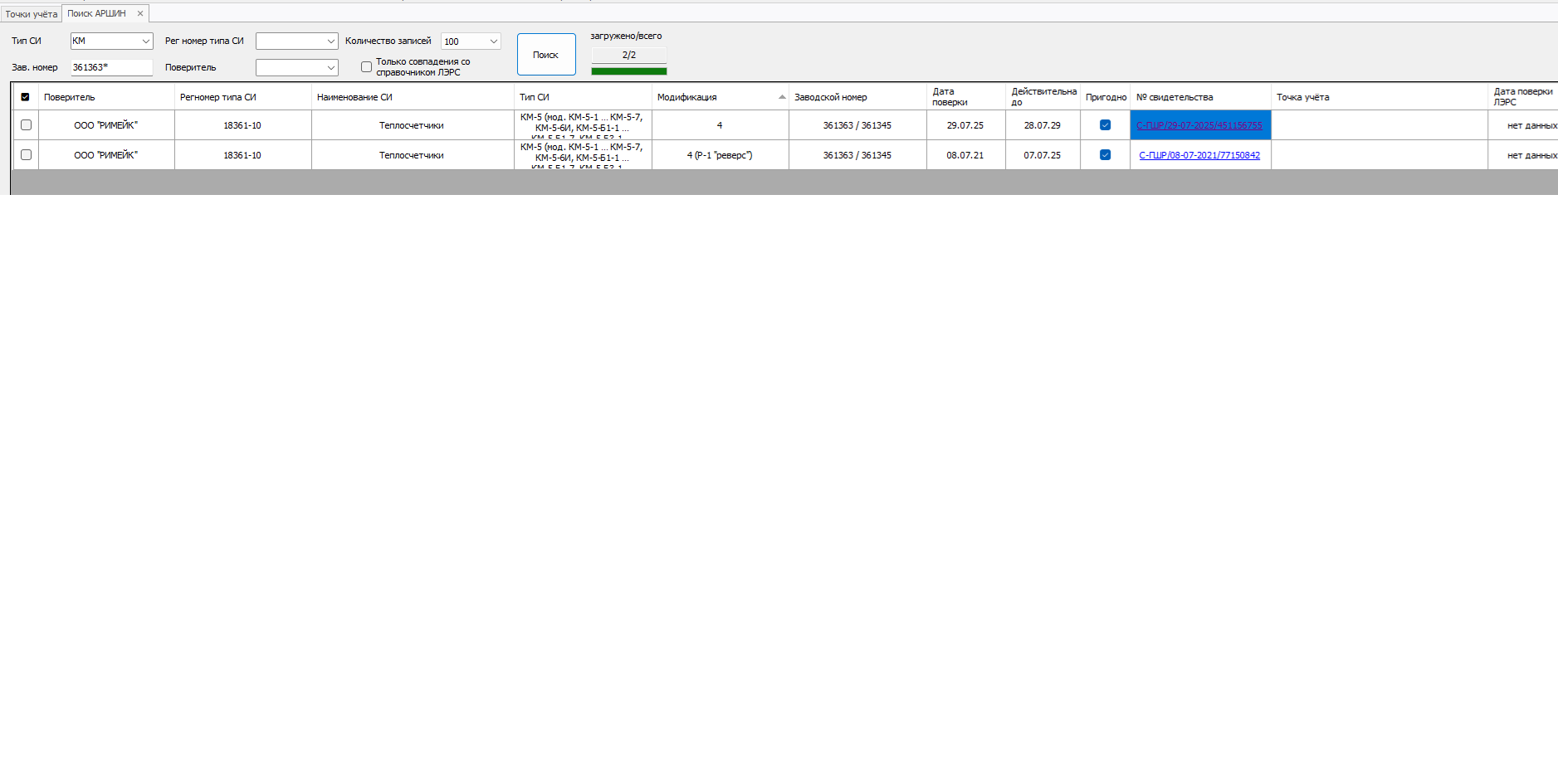 Сейчас для поиска владельцев нужно слева отметить галочками необходимые строки и нажать кнопку “Найти владельцев СИ”, и тогда в таблице появится колонка.